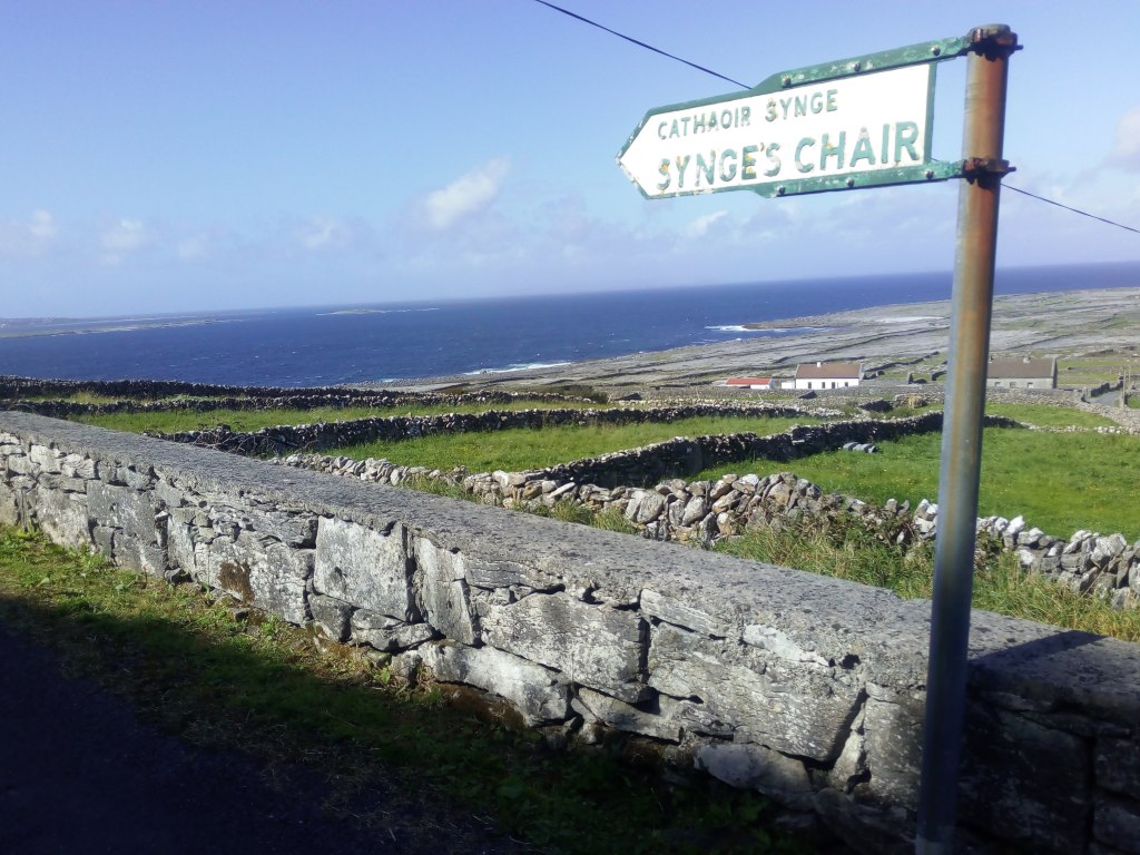 But then again, on the boat over the other evening, I could see my house – perched on the splendid height of Cinn a’Bhaile – and I smiled, knowing there was adventure in them there hills. The sun sets over Inis Mór, flooding the cliffs of Dún Aengus with its fiery dying light. There’s a dog outside that brings the football to the door for me to kick and him to fetch – simple joys for us both, I suppose. The staffroom at Scoil Náisiúnta Inis Meáin must be the most scenic staffroom in the country. The waves crash off the shore below me. The air smells of the sea. I’m the second closest house to Synge’s Chair. The world’s troubles seem so far away.