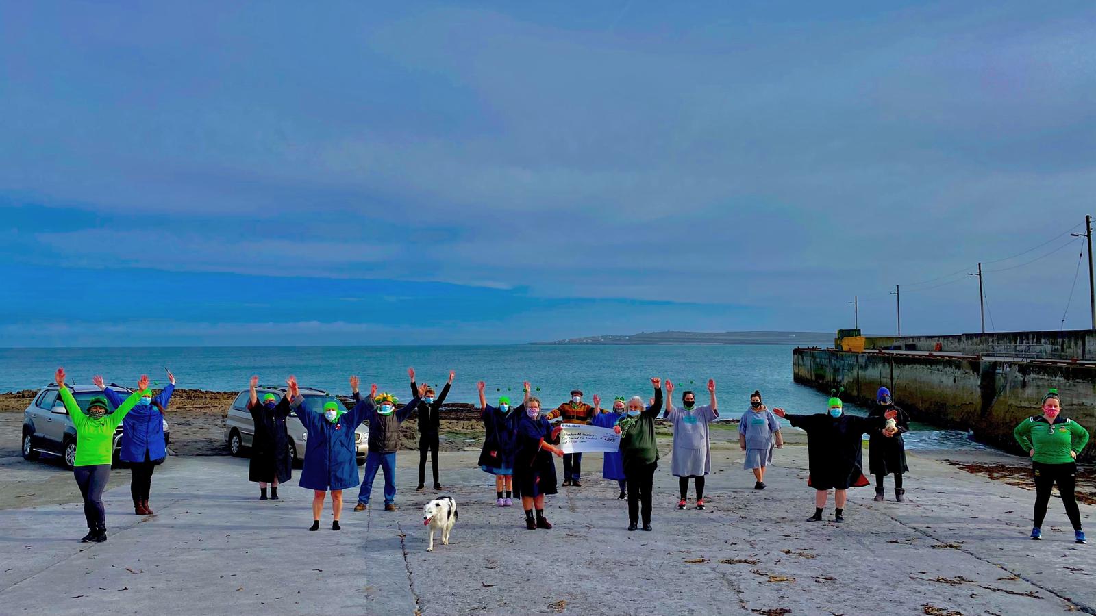 Back in September, amongst our group, swimming from Inis Oírr to Inis Meáin was a notion but as lockdowns and winter continued, it became a goal to be worked towards. The group numbers over twenty and in hail, rain, shine and pandemic we’ve shown up for each other. We’ve celebrated birthdays, céilí-danced, dodged jellyfish, and wrestled stubborn swim socks off exhausted feet. When it was too cold to say more than hello and goodbye, too miserable to do more than the minimum, too pandemic-ky to do anything else, we showed up. Swimming in the sea supported us during the lockdowns, and this is us paying that forward.