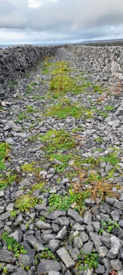 I sat at my doorstep to lace up my boots, the distant vibrations of the ferry telling me it was 0815. There was little sound, other than the ferry’s faint hum, my white(ish) sheets flapping on the clothes line, a bird or two twittering. The wind was westerly this morning so the water between Inis Meáin and Connemara was quiet, meek almost in its lapping of the shore. A cow lowed, another answered, a rooster crowed. They reminded me of a music ensemble tuning up.