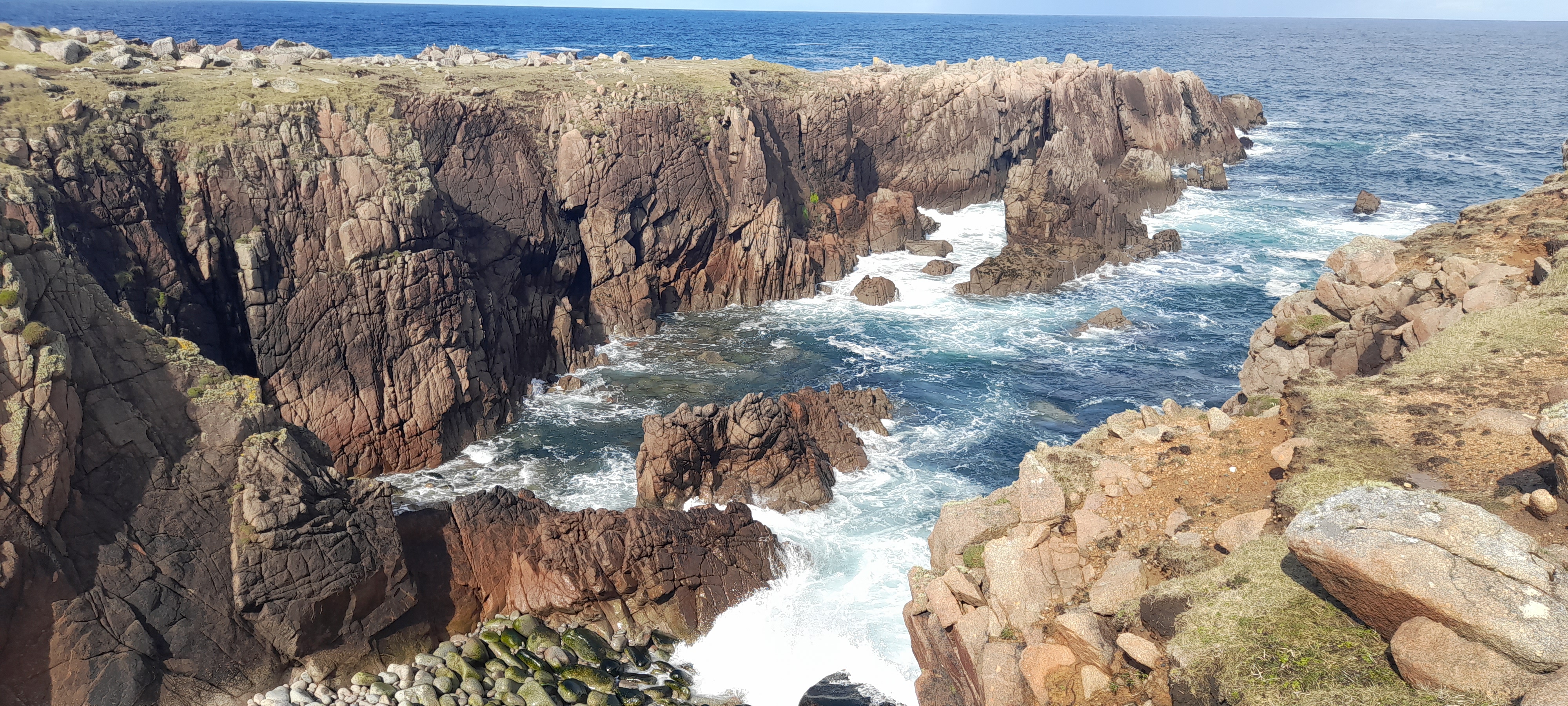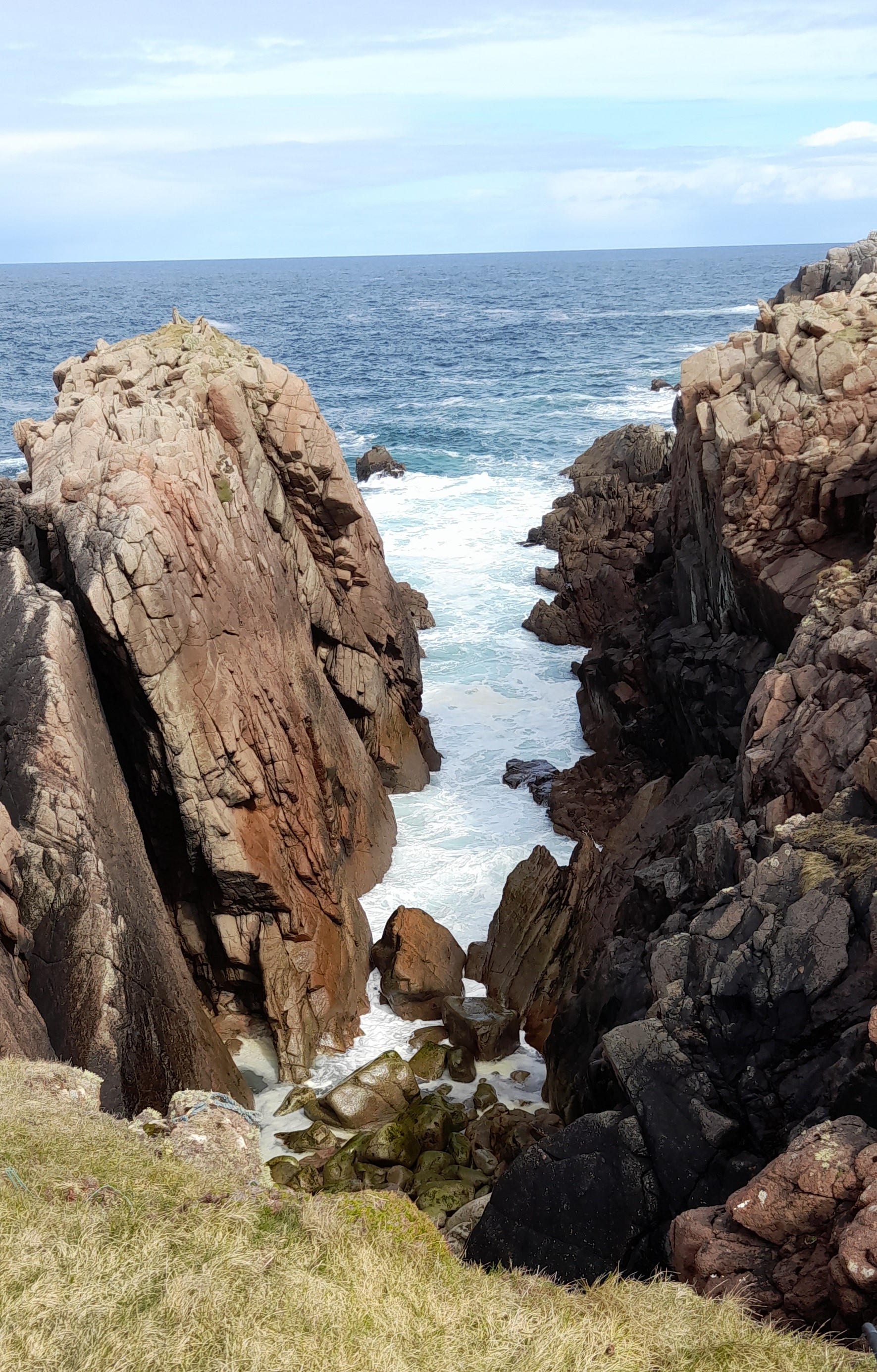 I easily covered the island on my first day, but enjoyed revisiting each spot, chasing new perspectives. I’d a whole afternoon on the east side of the island where there is a cluster of houses, and beyond that the wild cliff faces and acres of crag. Beyond that again is clear coral water, sea stacks and beyond that again, the Hebrides, the Faroes, Iceland. After a few photos I’d put the phone away and let my mind slow down and empty out, make room for the creative stuff. It is such emptying out that brings me to these remote spots.