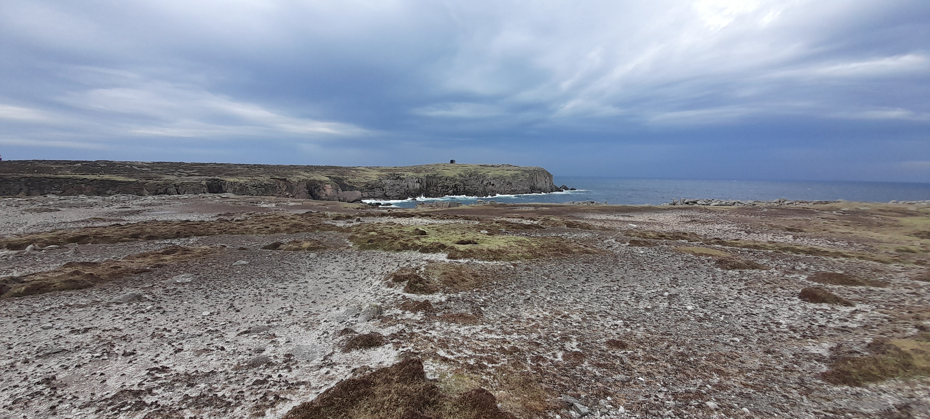 The island is around 5 kilometres long and a kilometre wide, the island’s road linking the lighthouse at the western end to the island’s spectacular cliffs edges at the eastern end. The land looks much like commonage at home – it’s neither bog nor grass, loosely fenced if at all, land where runners would be sufficient but ruined.